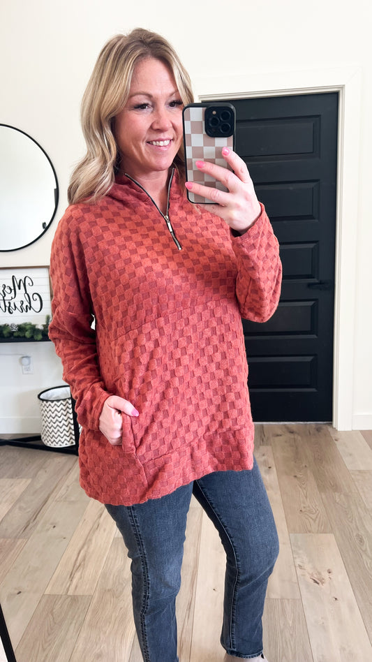 Checkered Half Zip Hoodie Pullover
