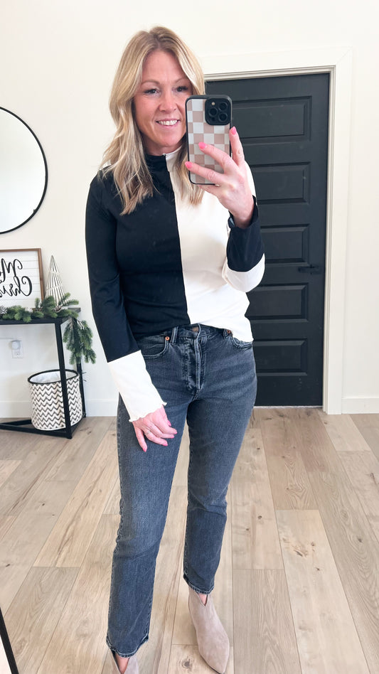 Color Block Knit Long Sleeve