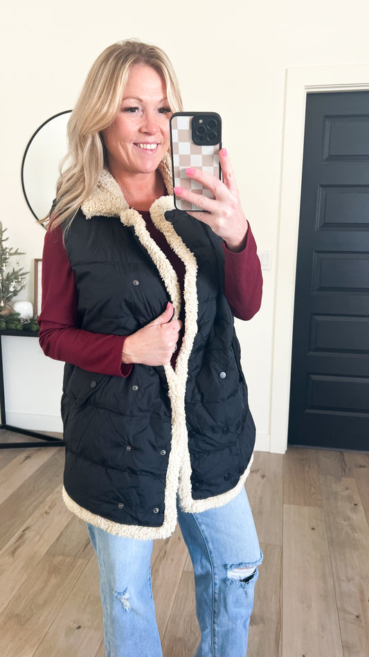 Sherpa Trim Puffer Vest