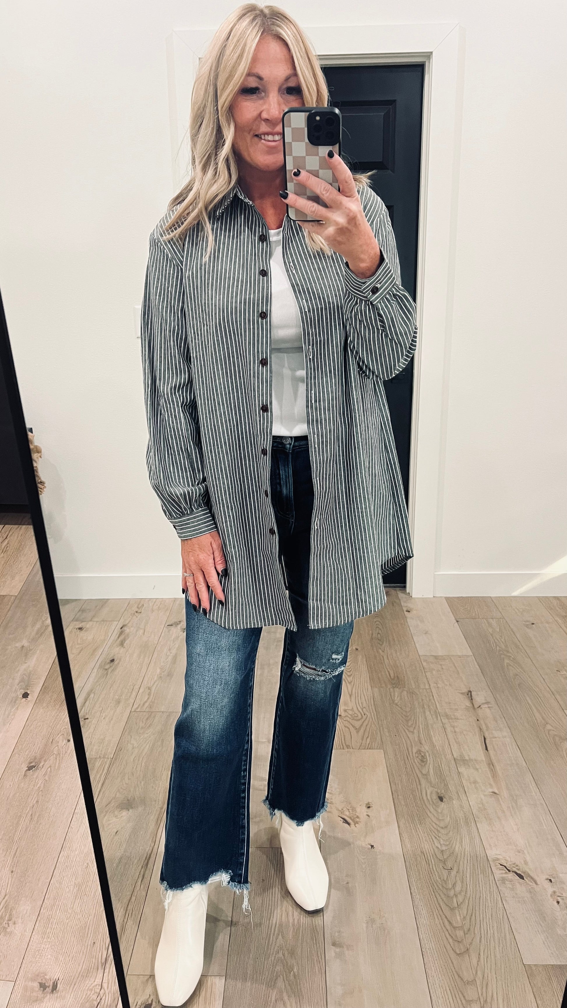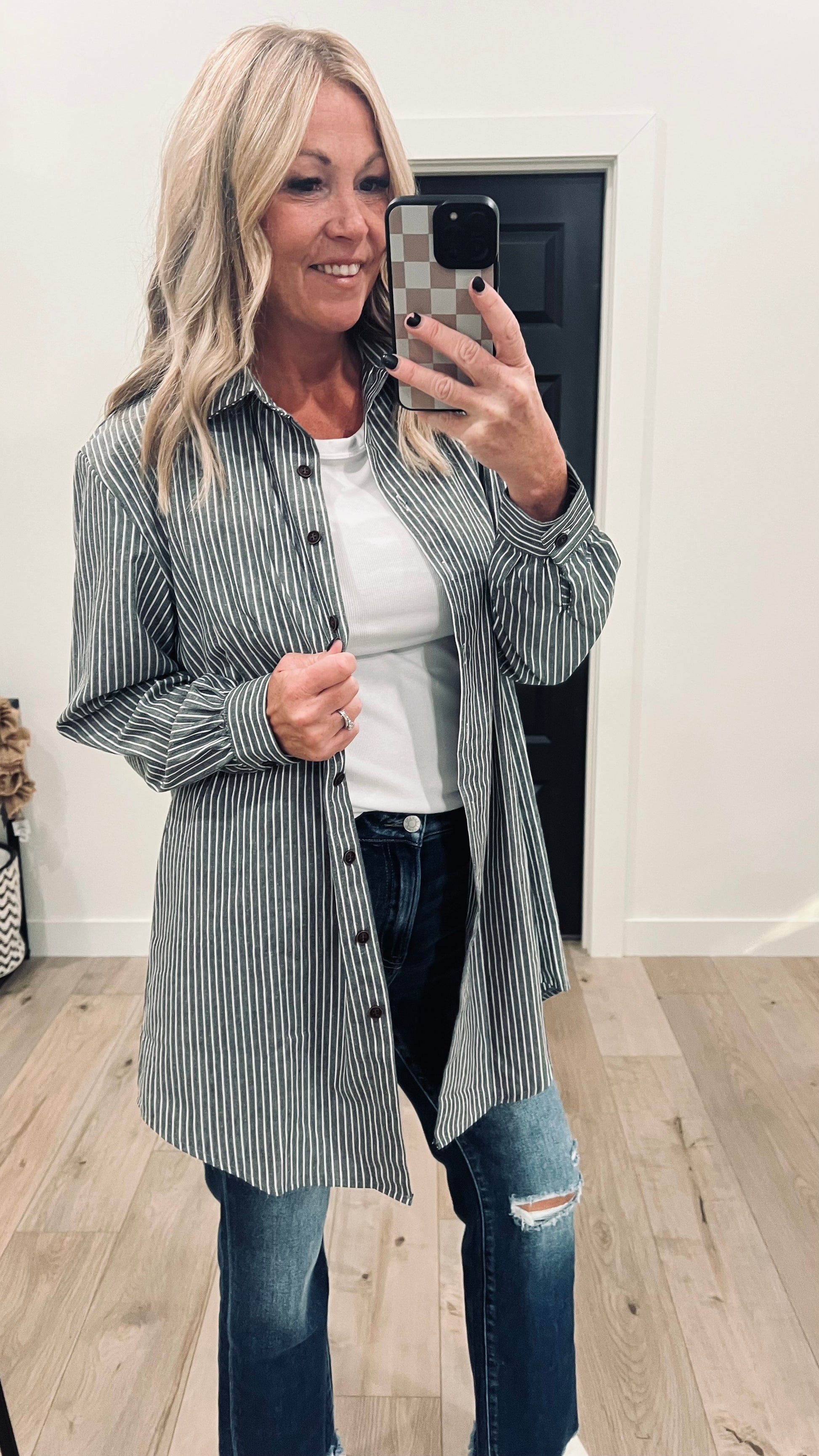 Striped Longer Length Button Up